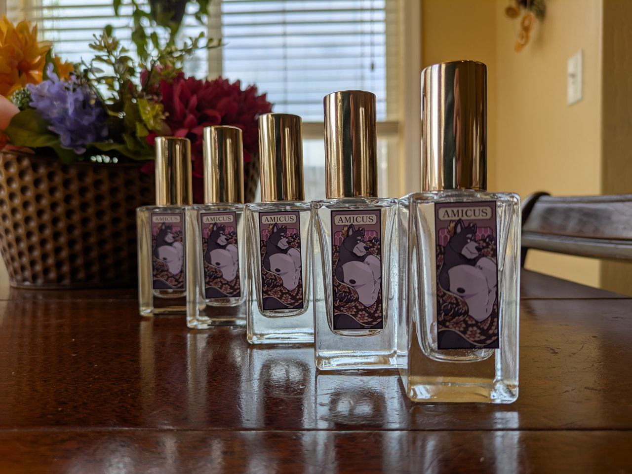 Candles: These candles come in an 8oz metal container with a metal lid. The candles are made of soy wax and are colored based on the chosen character. They use the same recipes as our base perfume scents and can be burned for about 40 hours. Perfect for the dungeon, bedroom, or just general use! They also come with an NSFW sticker!